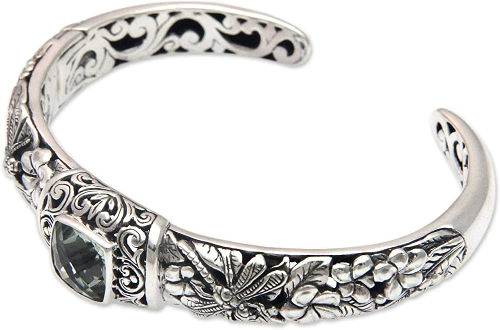 NOVICA Prasiolite .925 Sterling Silver Cuff Bracelet 'Dragonfly Frangipanis'